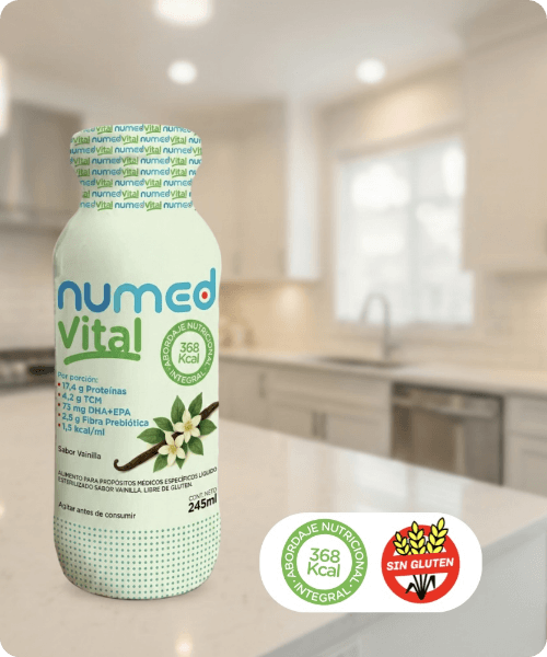 NUMED VITAL es un suplemento nutricional integral que no solo aporta calorías y proteínas, sino que también actúa sobre los mecanismos inflamatorios, oxidativos y metabólicos implicados en la pérdida nutricional y muscular en enfermedades crónicas, brindando así una intervención completa y efectiva.